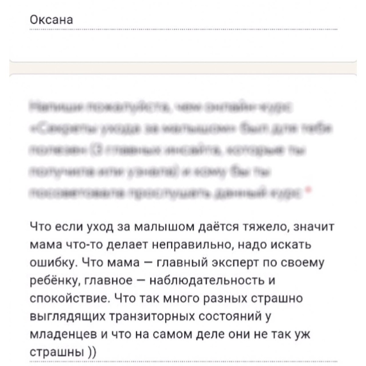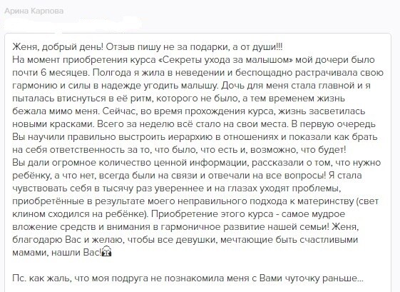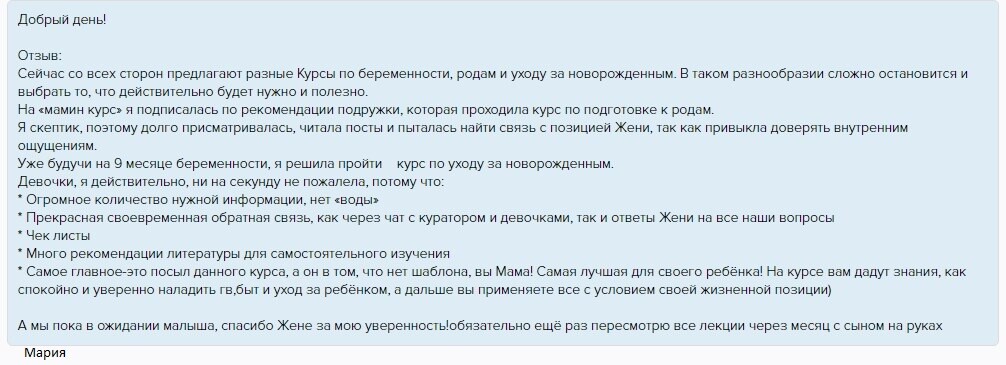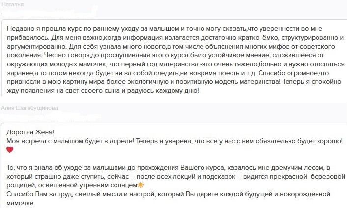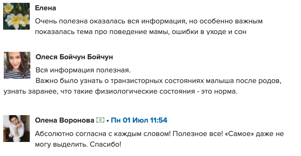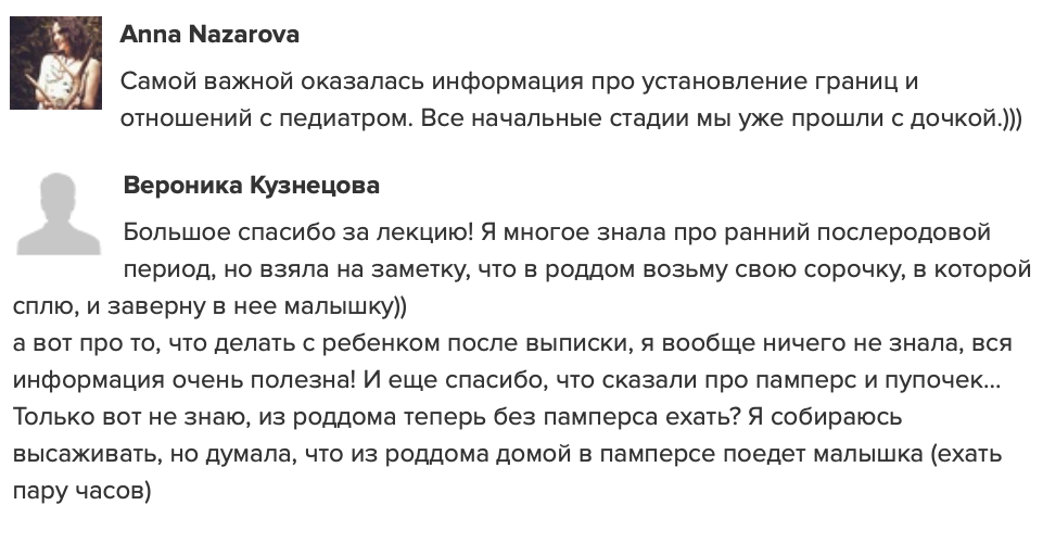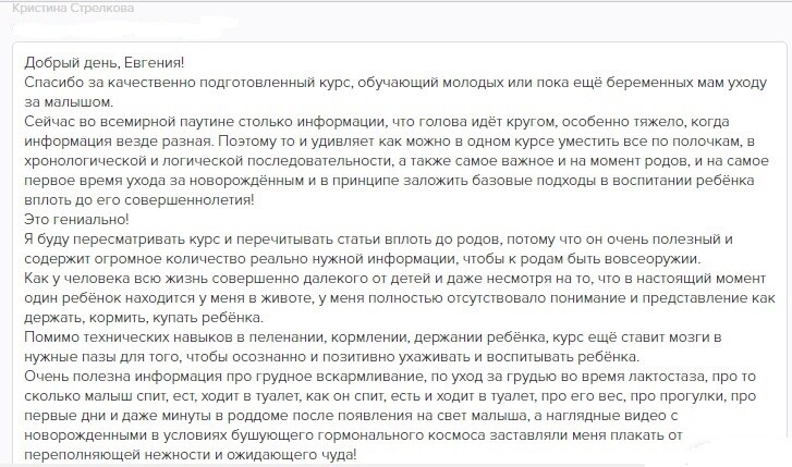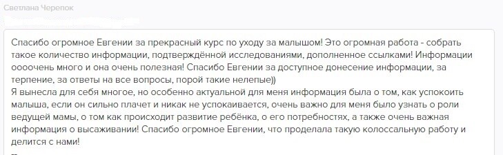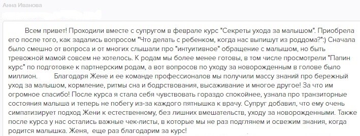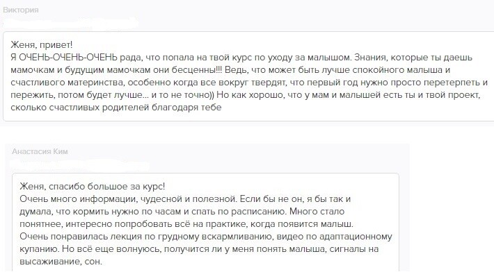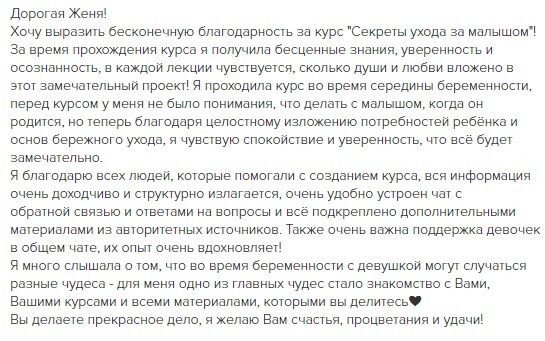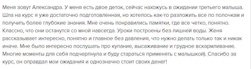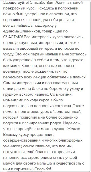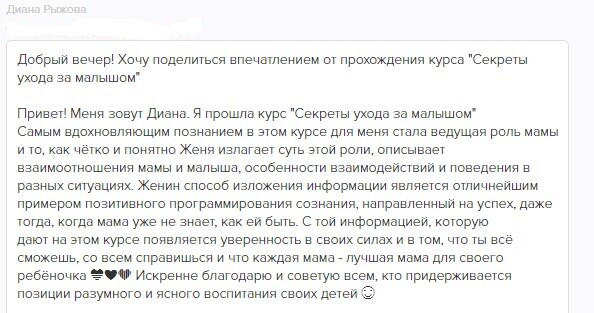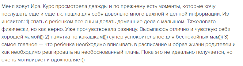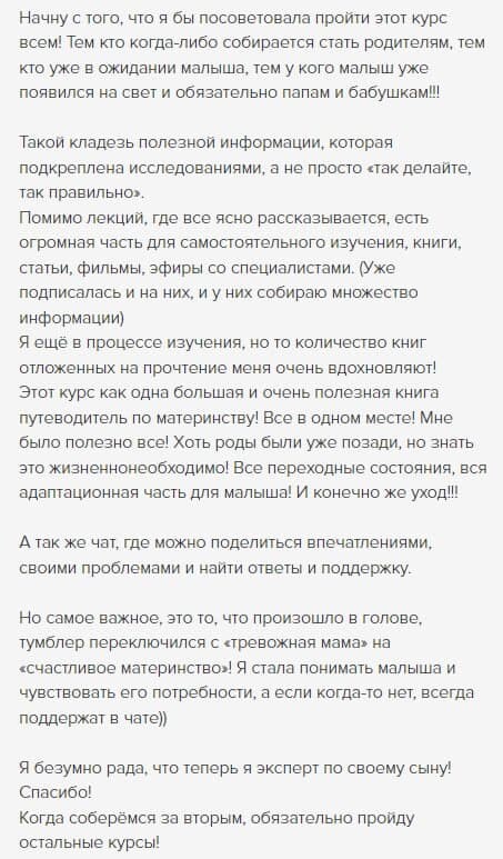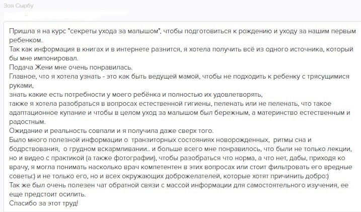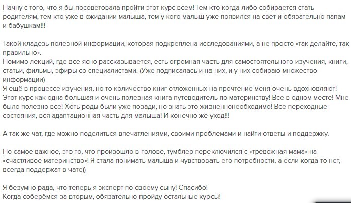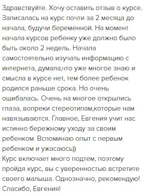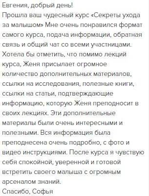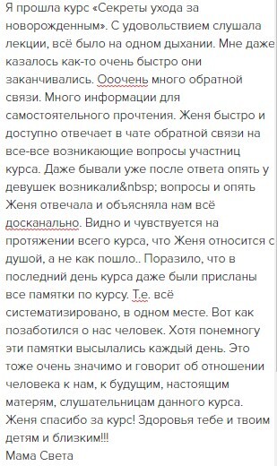 отзывы о курсе "Секреты ухода за малышом"