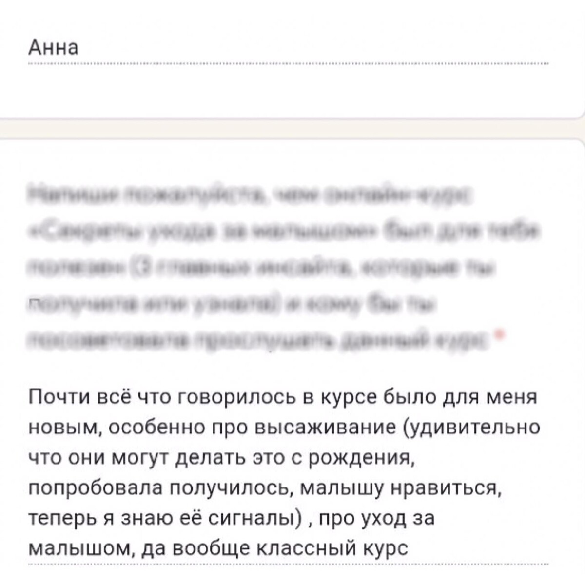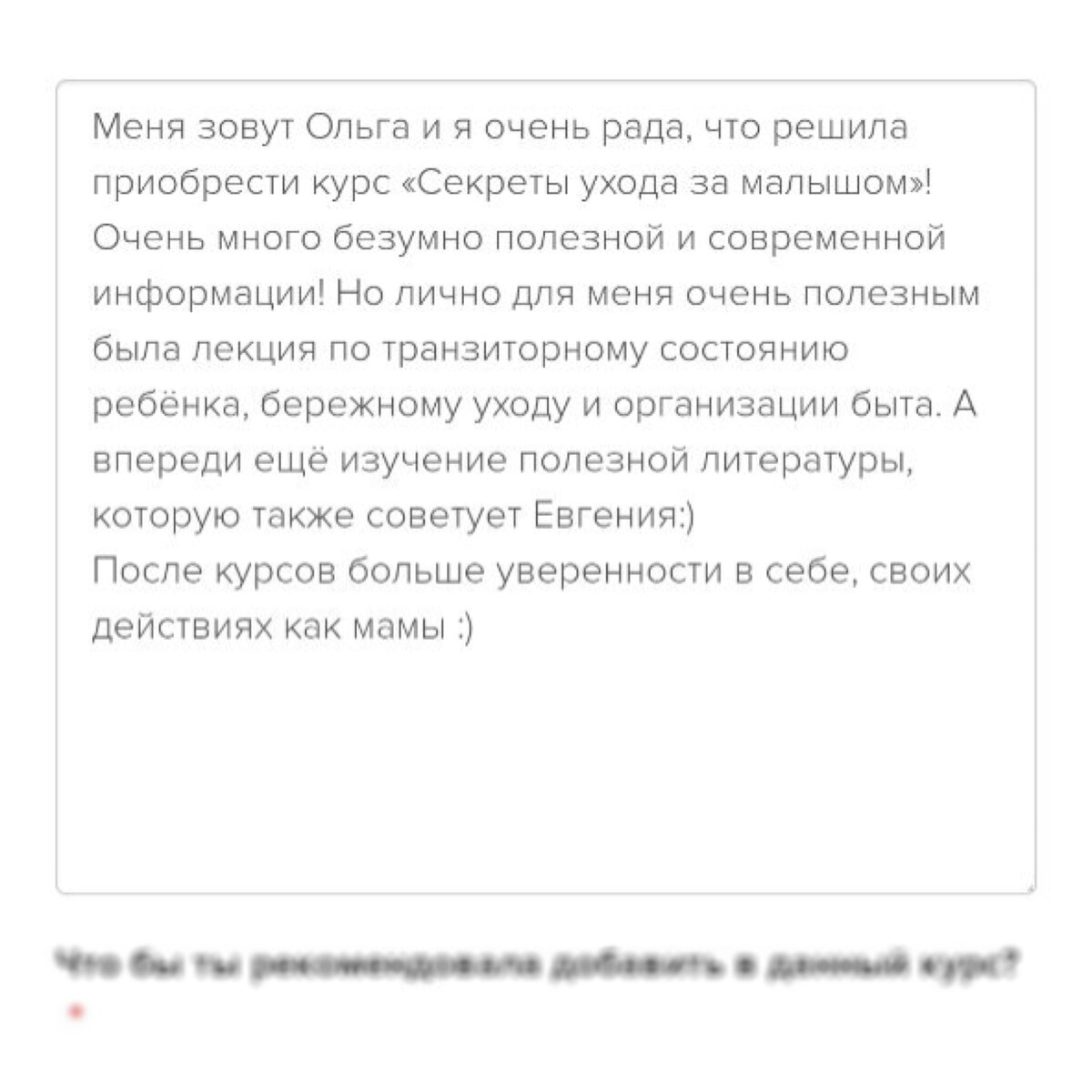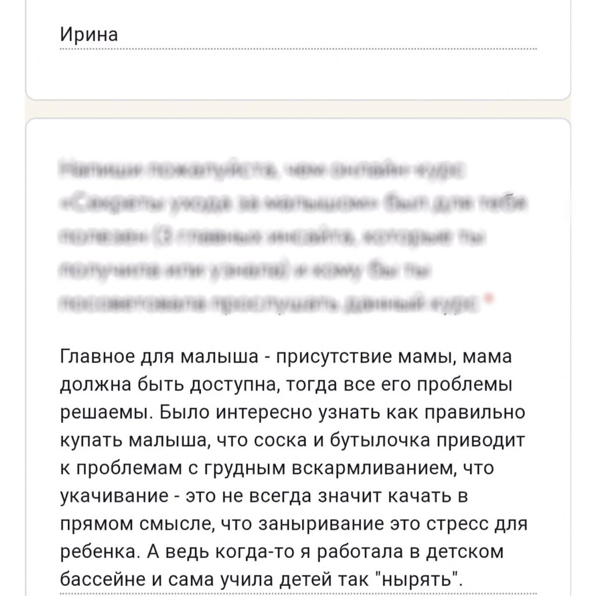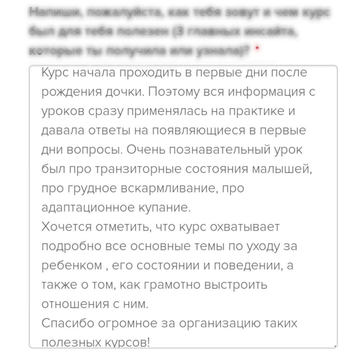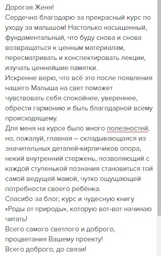 отзывы о курсе "Секреты ухода за малышом"