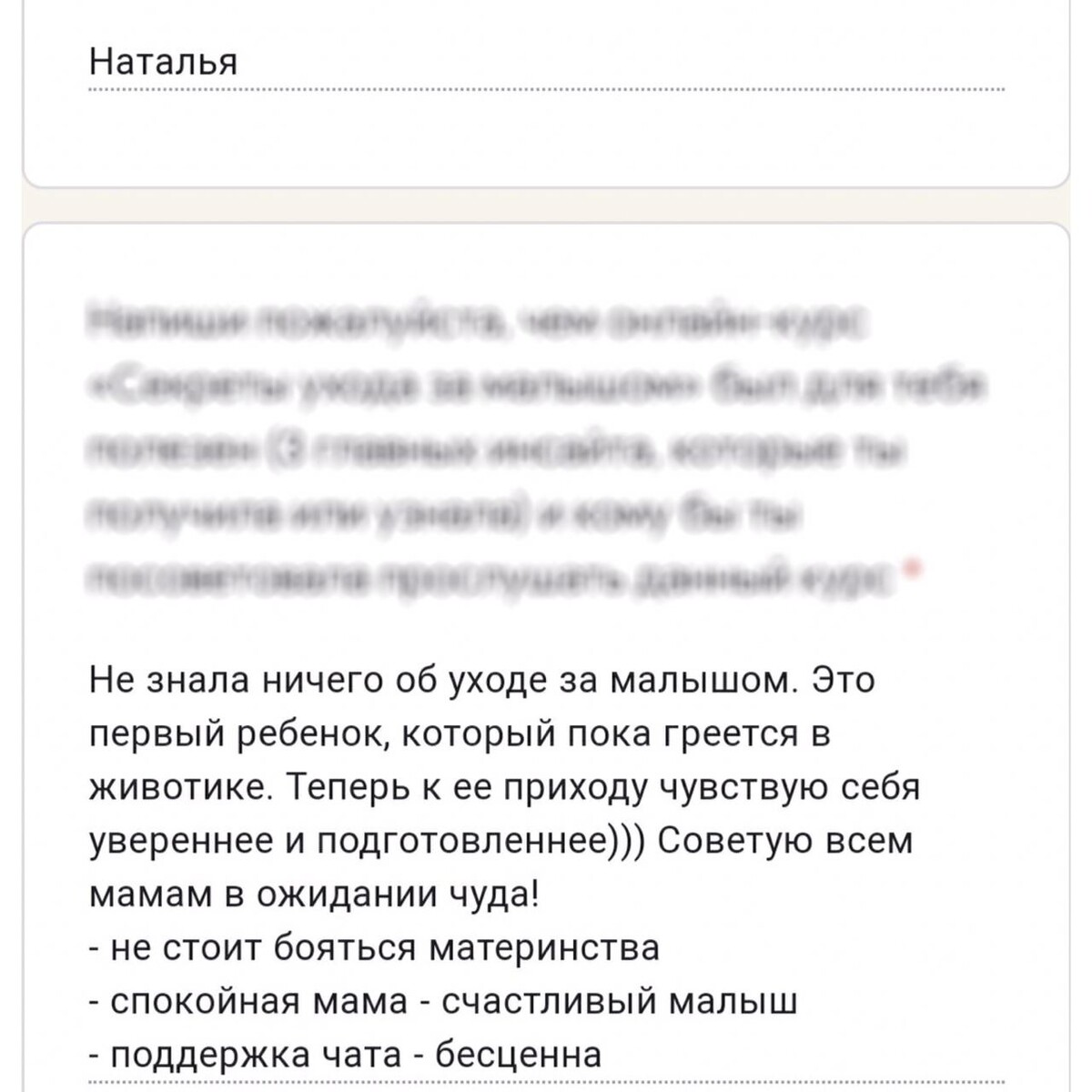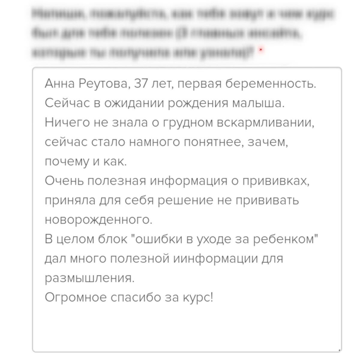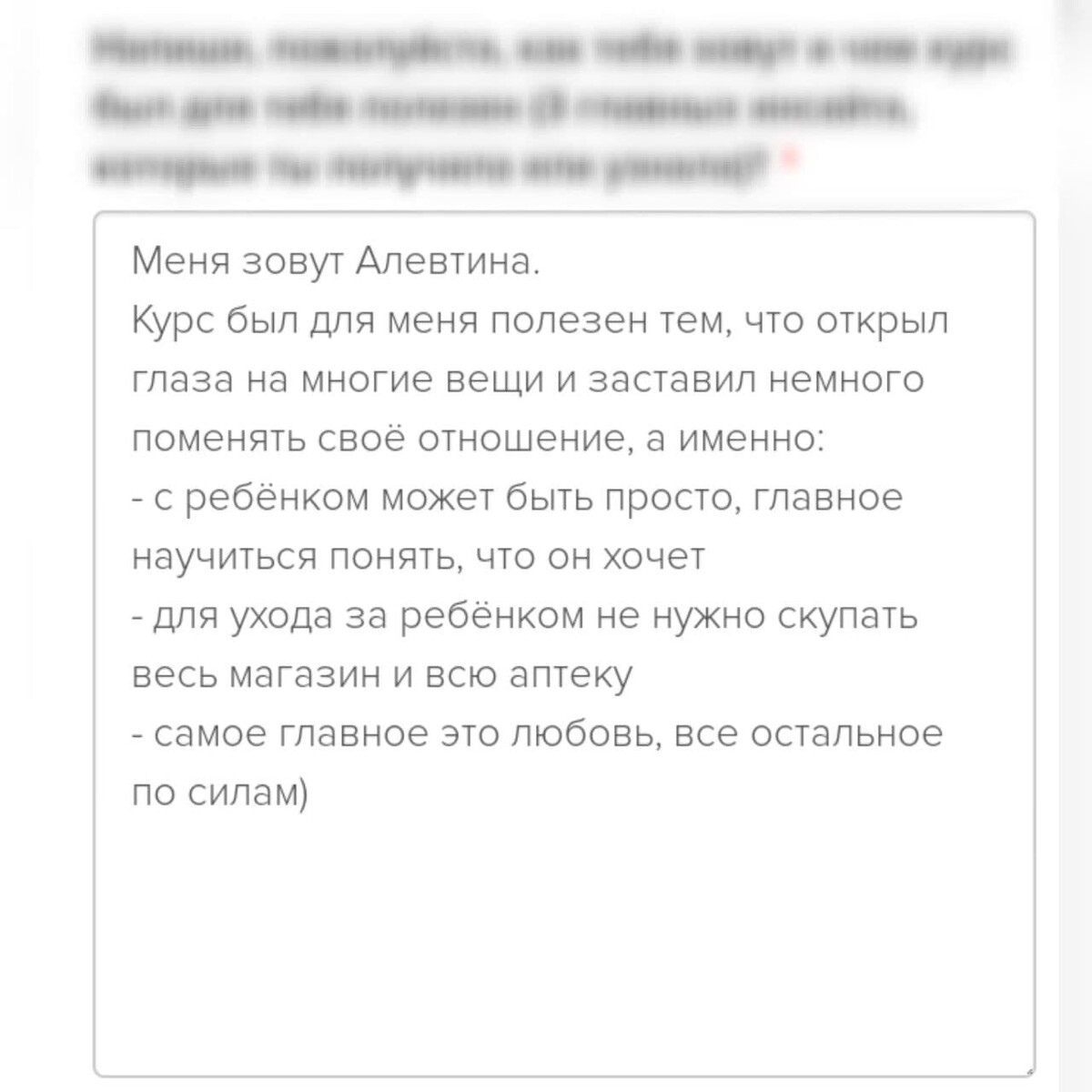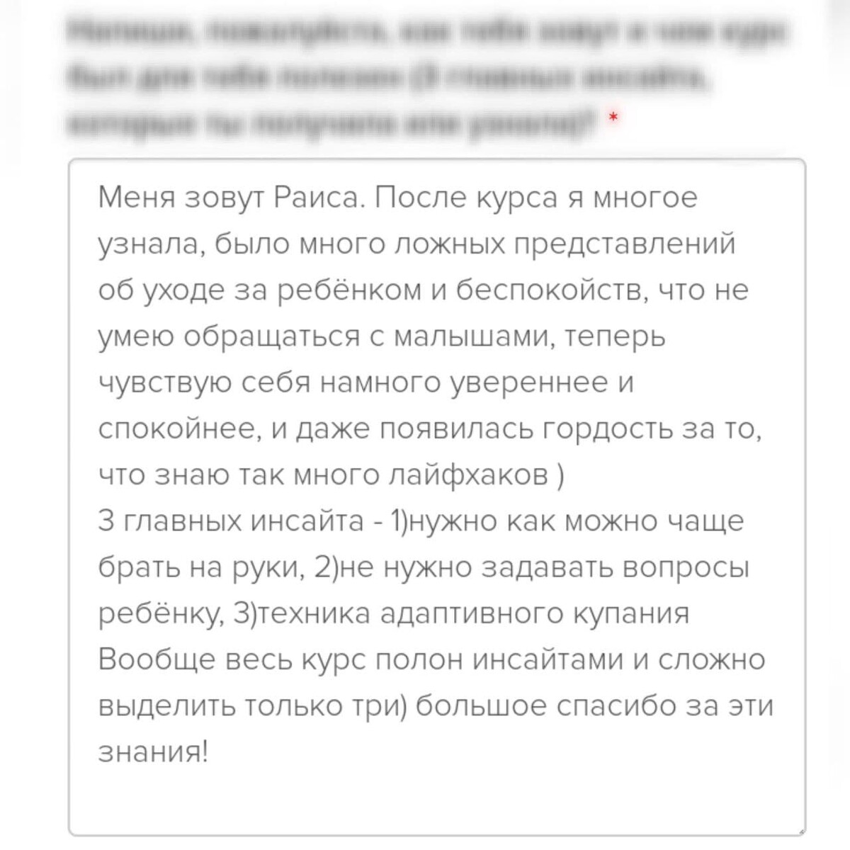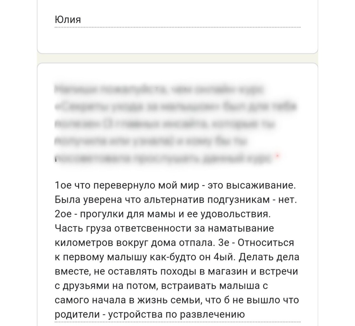 отзывы о курсе "Секреты ухода за малышом"