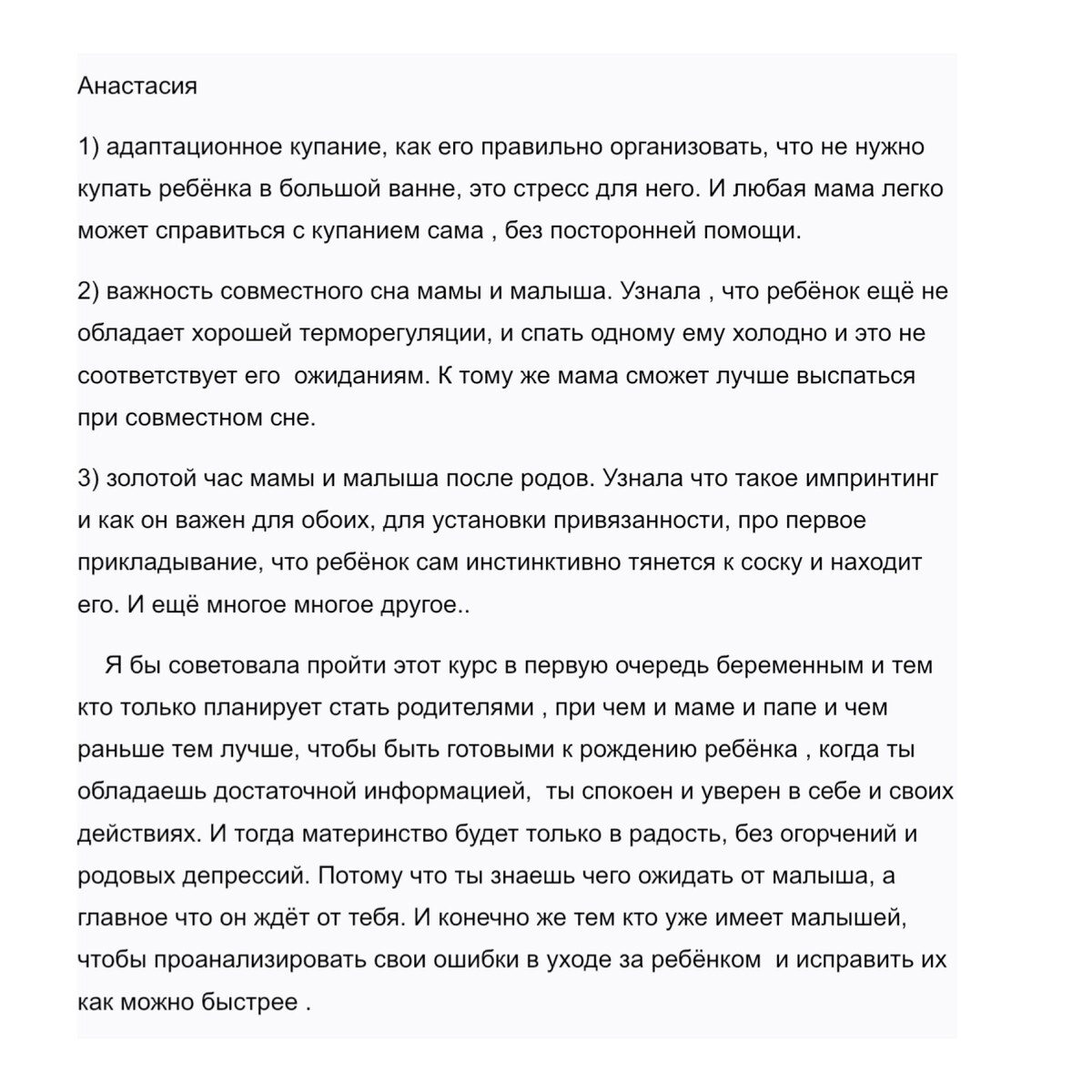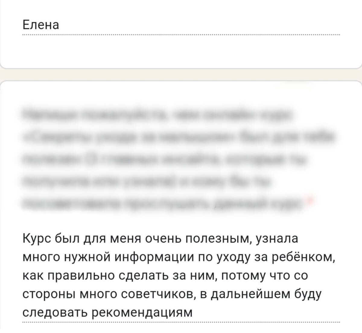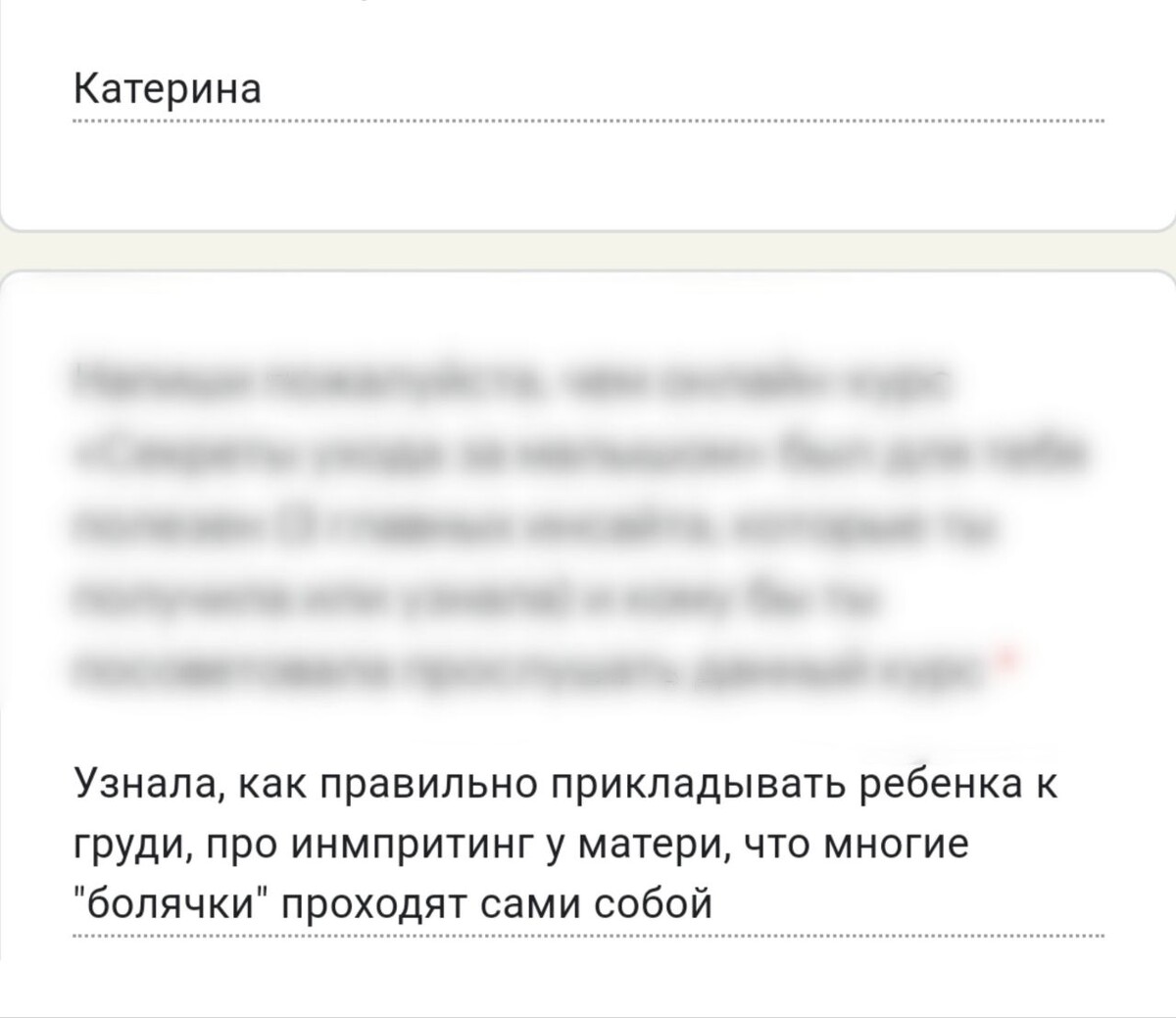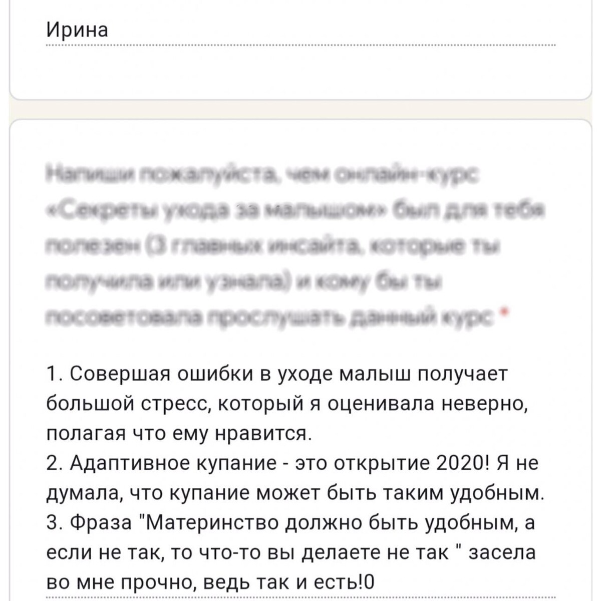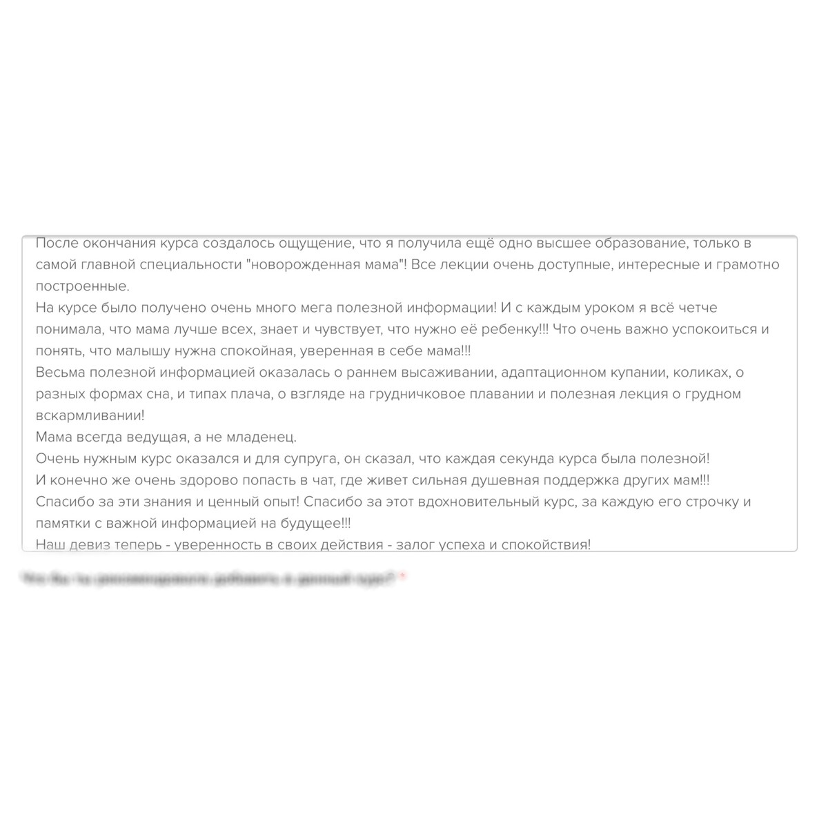 отзывы о курсе "Секреты ухода за малышом"