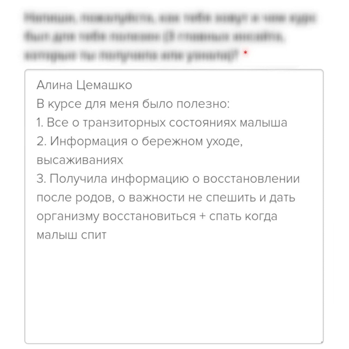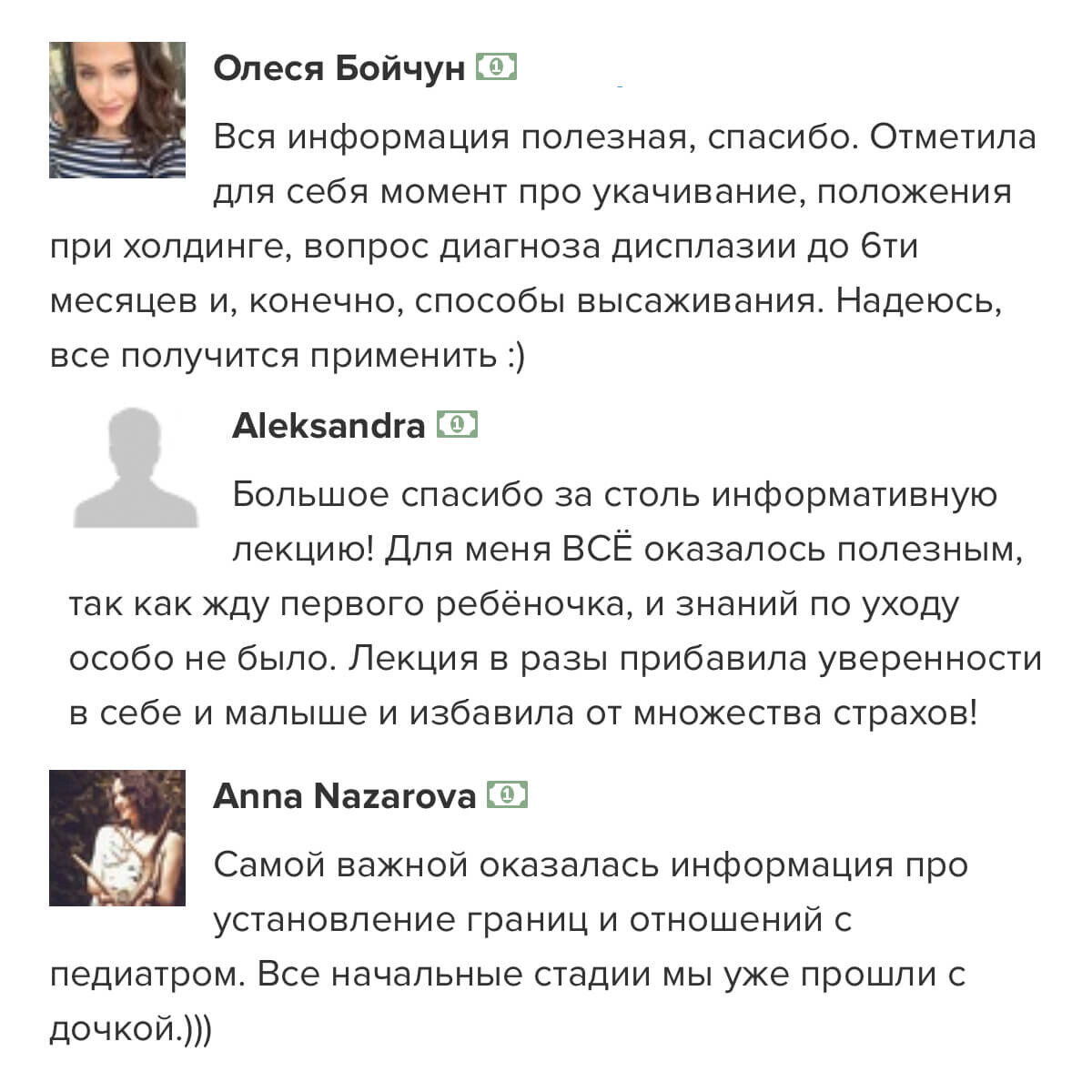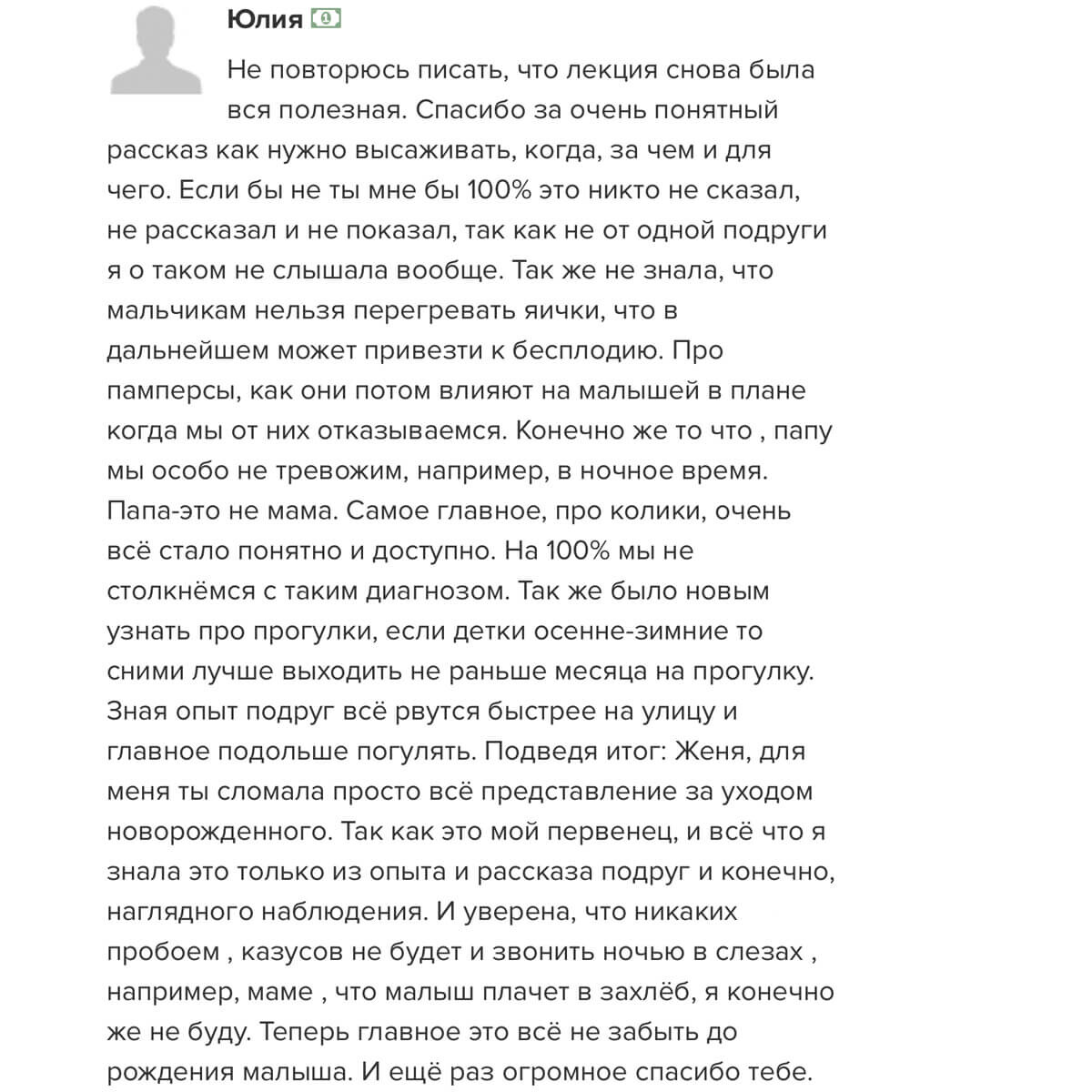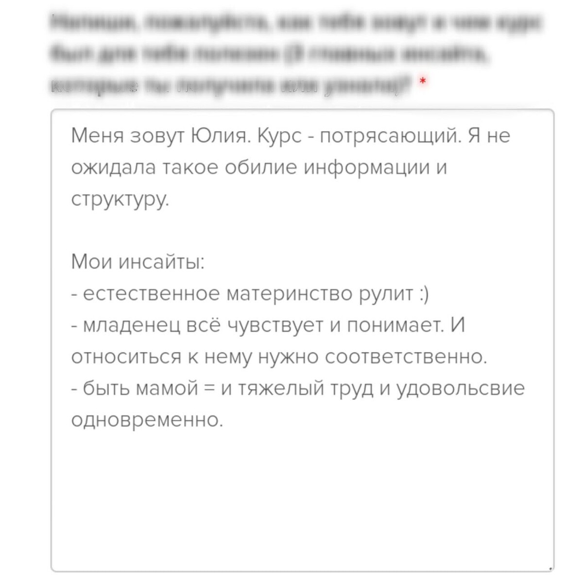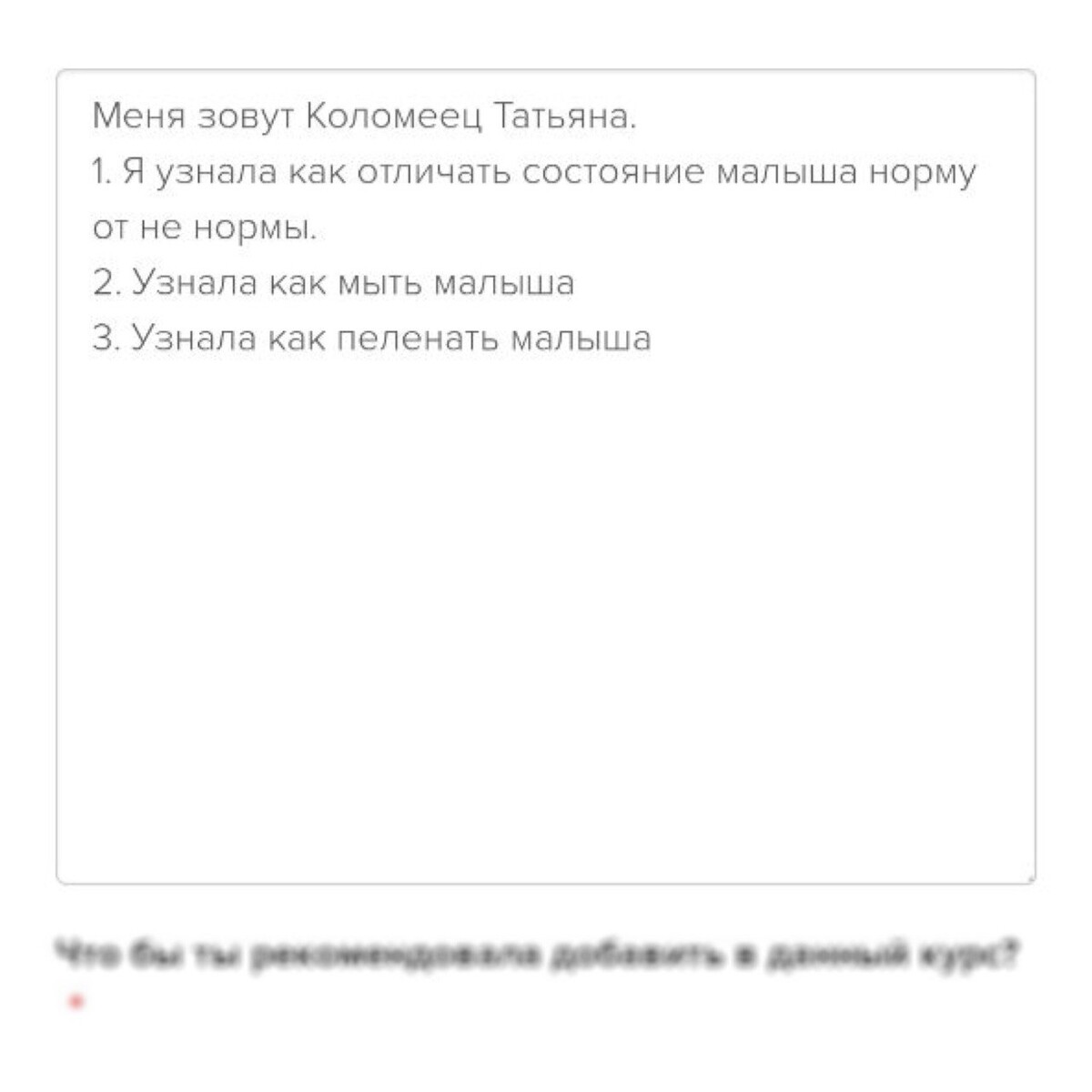 отзывы о курсе "Секреты ухода за малышом"