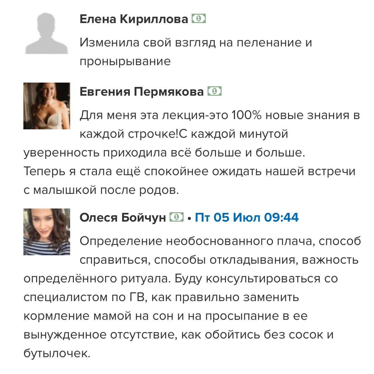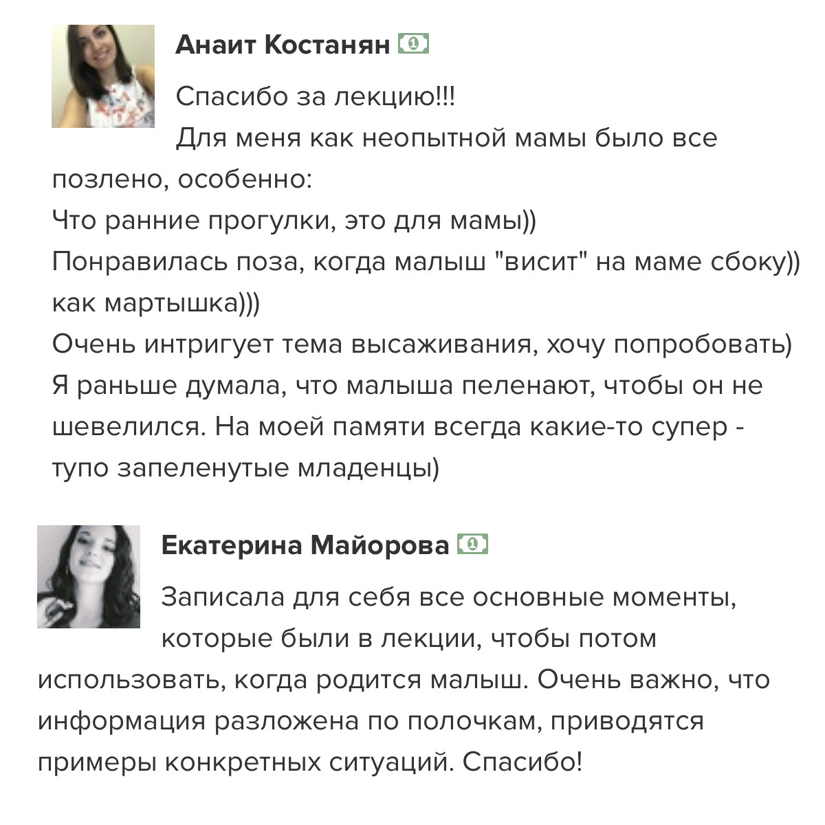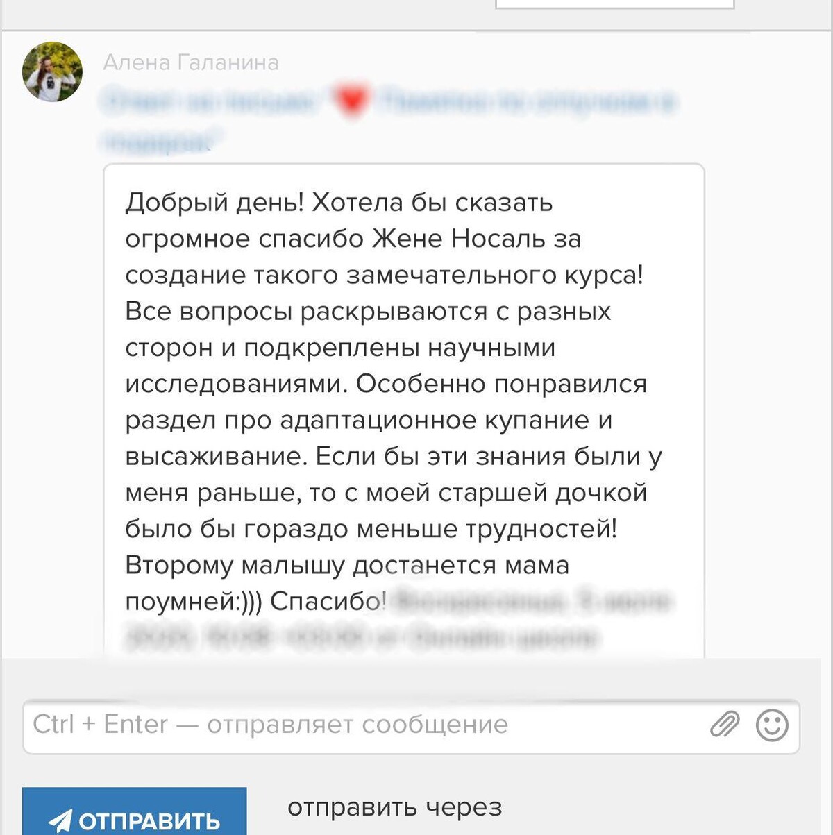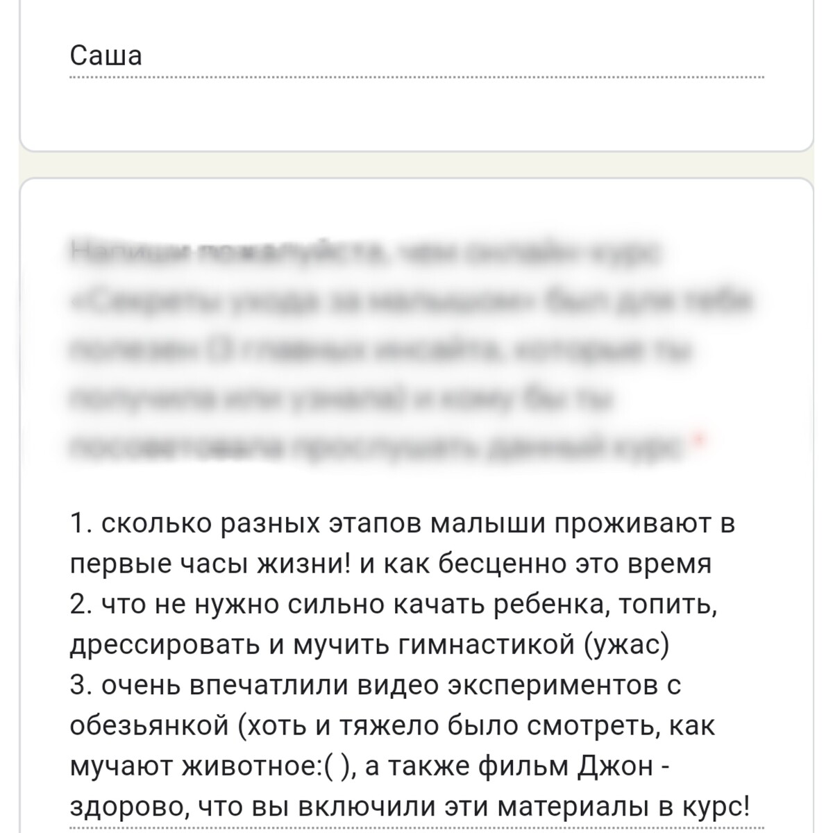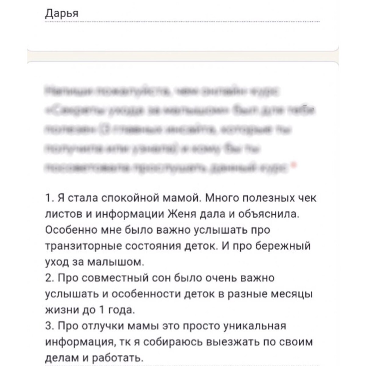 отзывы о курсе "Секреты ухода за малышом"