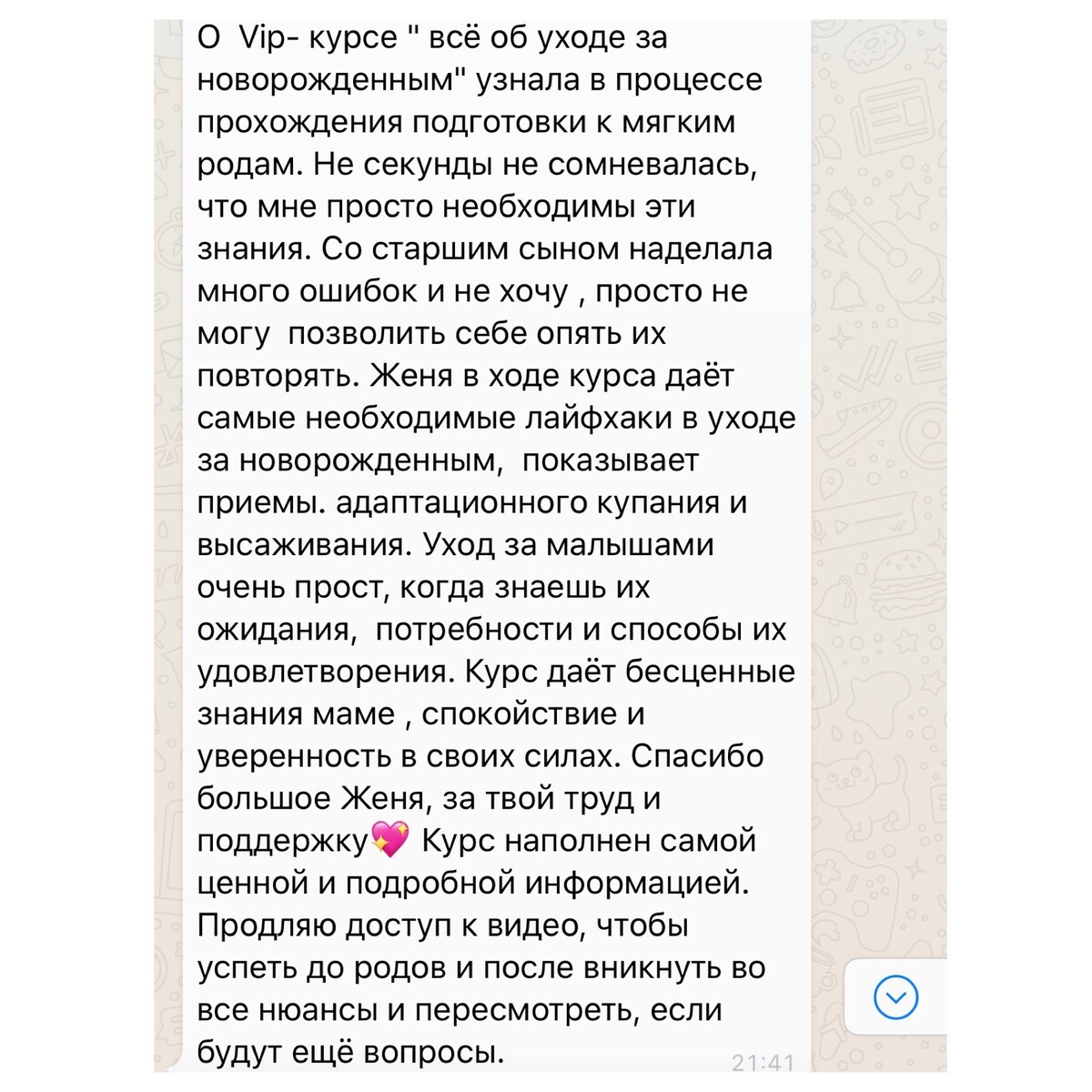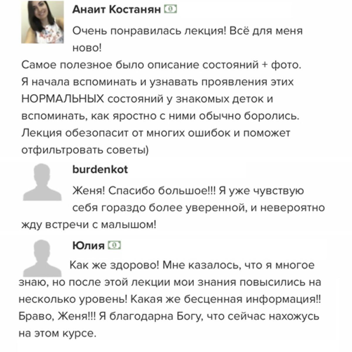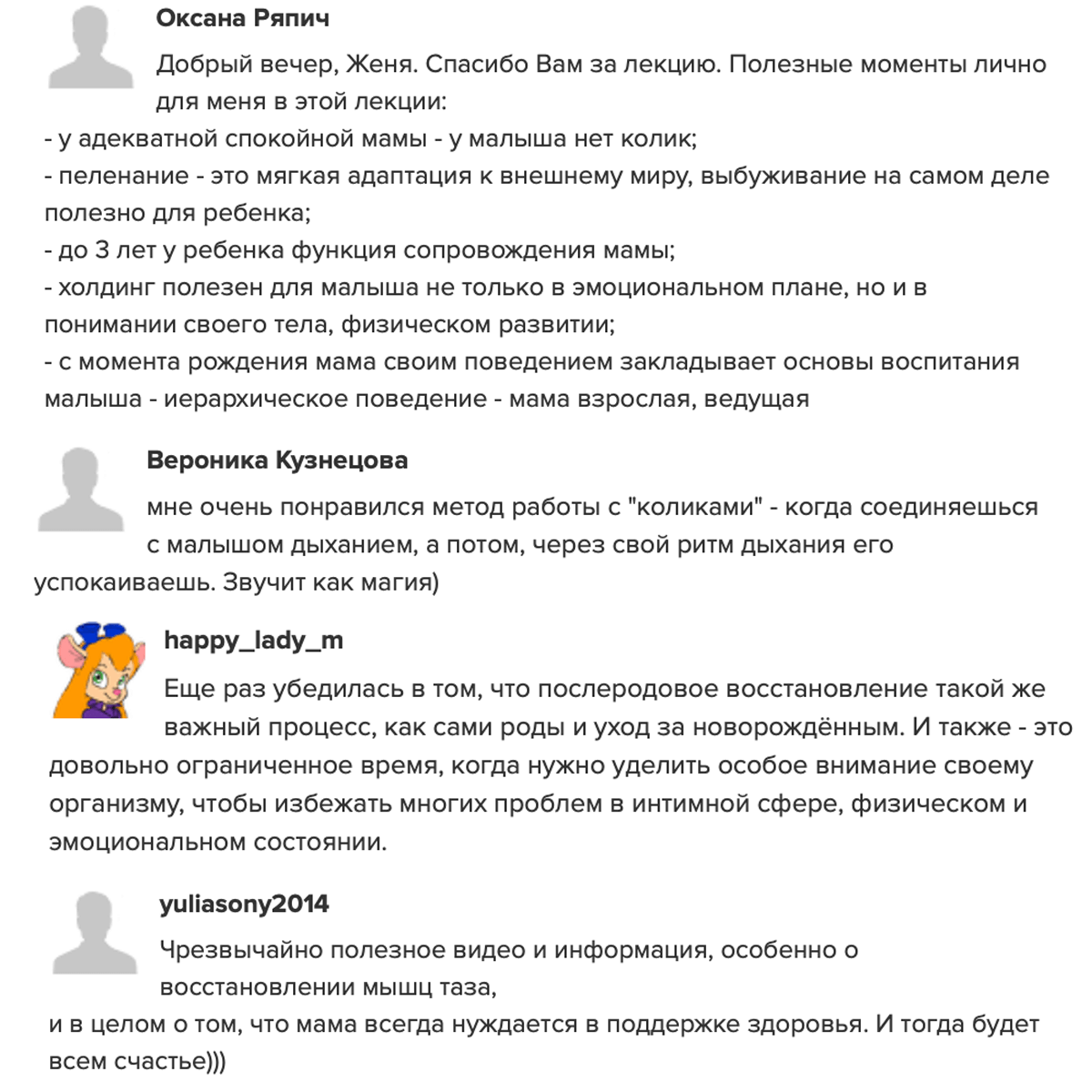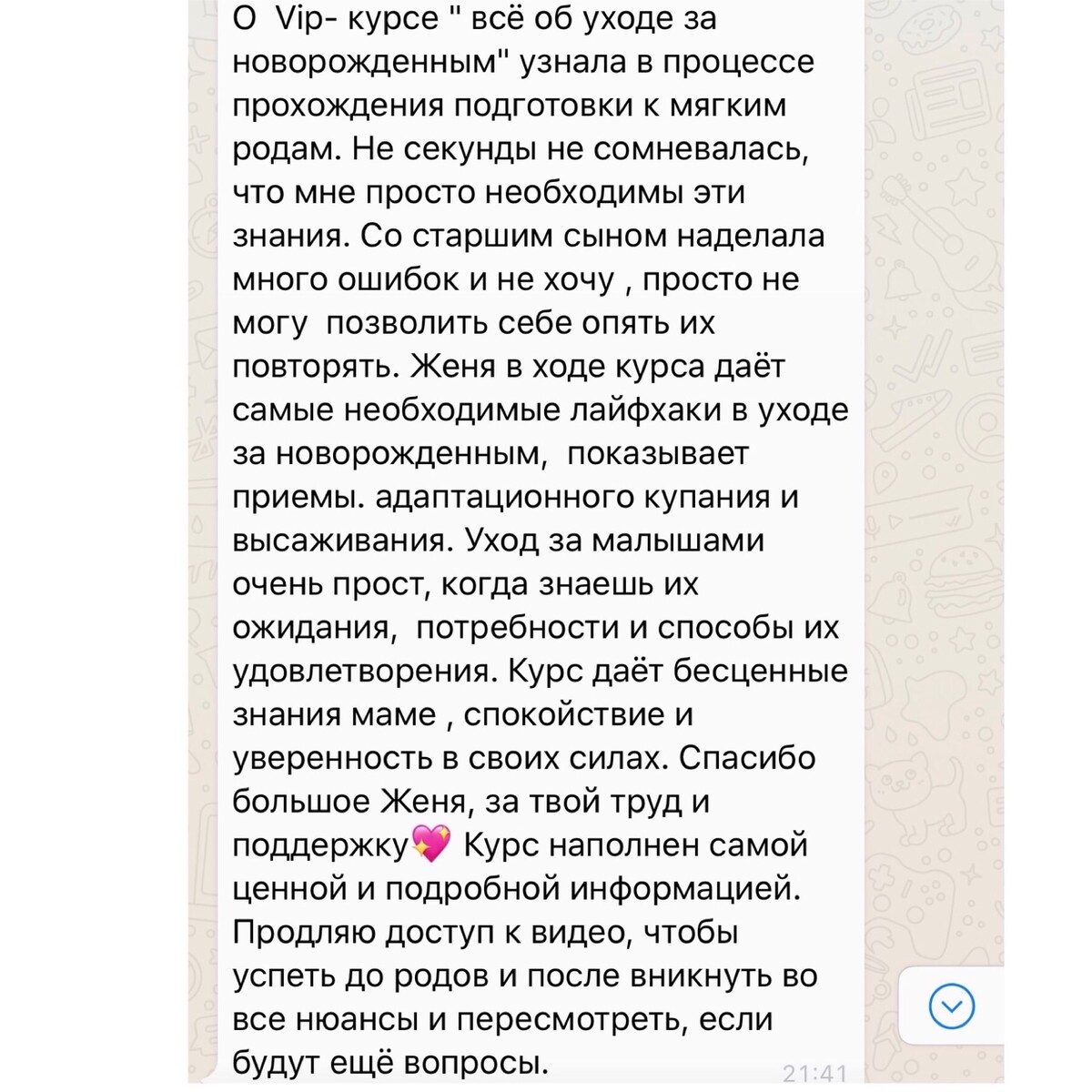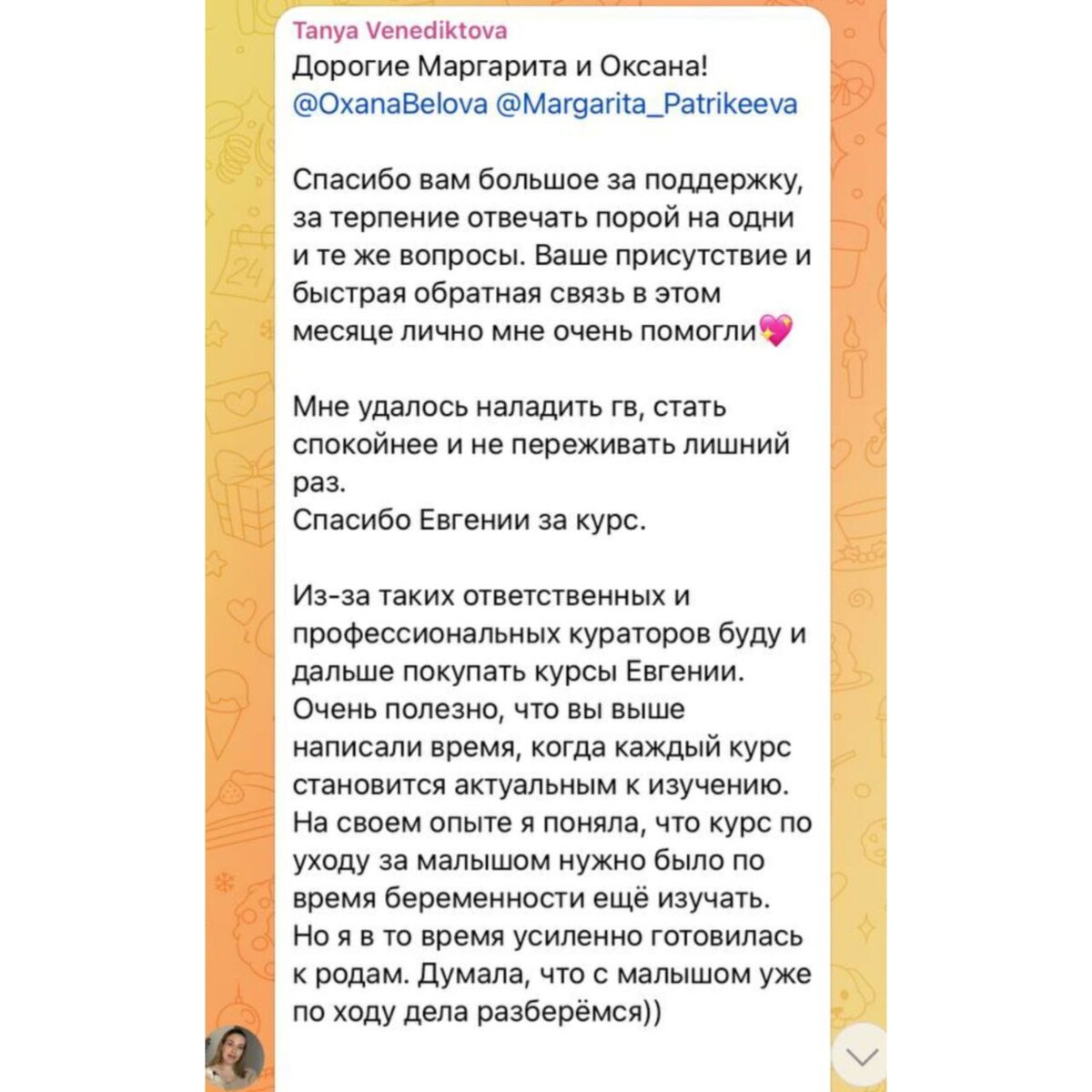 отзывы о курсе "Секреты ухода за малышом"
