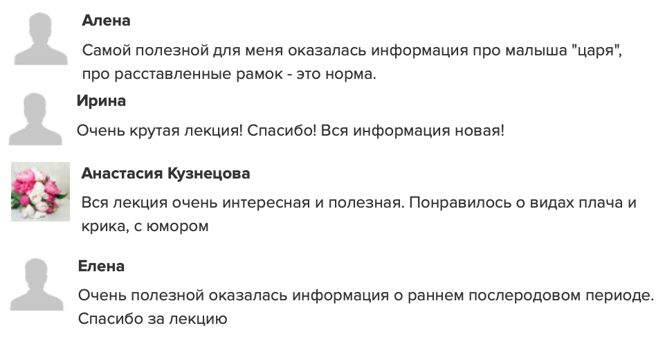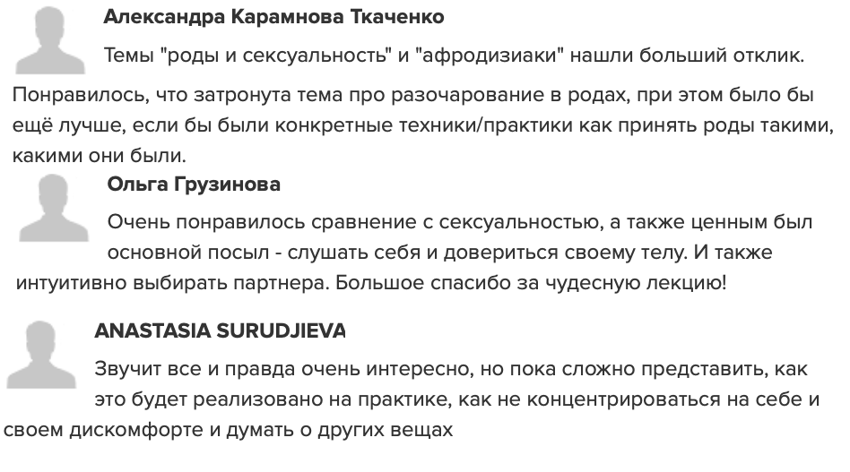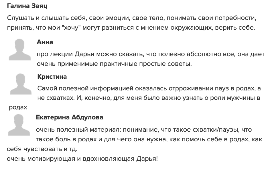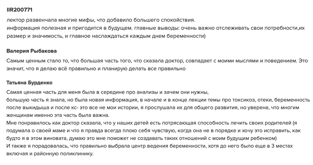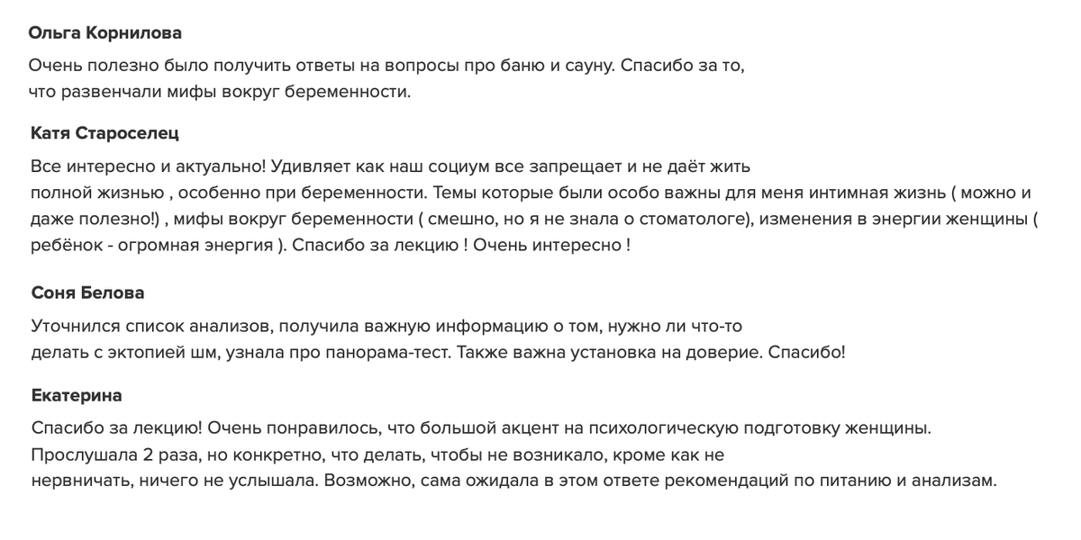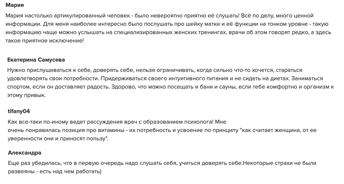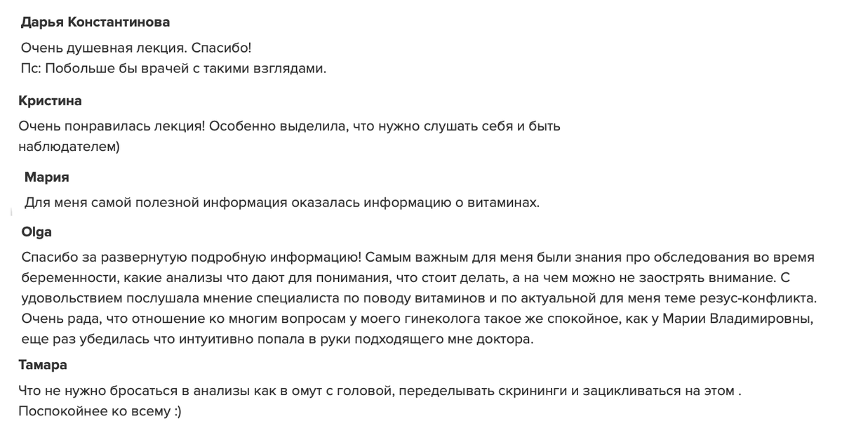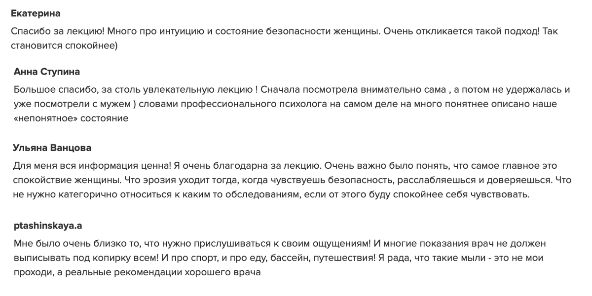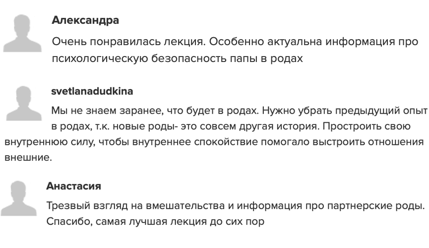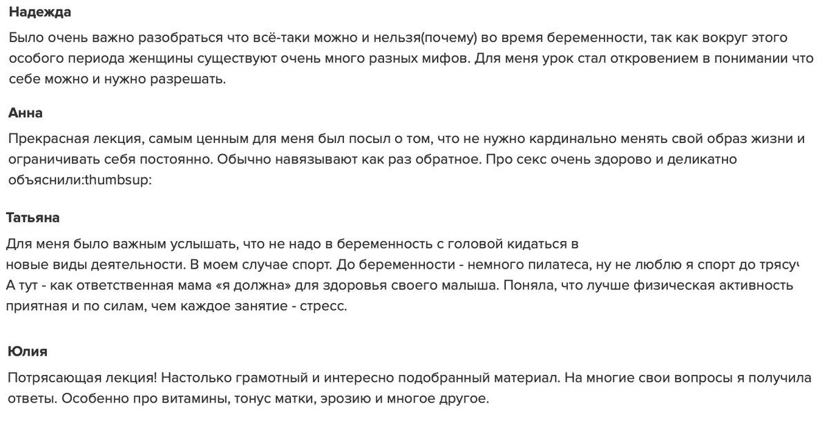 Шикарный курс и подача информации, очень подробные лекции с таааким количеством информации! Отдельная благодарность за прямые эфиры, ты просто заряжаешь уверенностью и спокойствием! Итоги у меня такие - реально ушел страх родов - что пойдет что то не так, попаду в не тот роддом, а как потом? Сейчас есть спокойствие, осознание того, что принимаю любое развитие ситуации, уверенность в себе и своих силах, и ещё не страх, а любопытство и интерес, и я готова к этому путешествию в Роды благодаря тебе и твоему курсу!