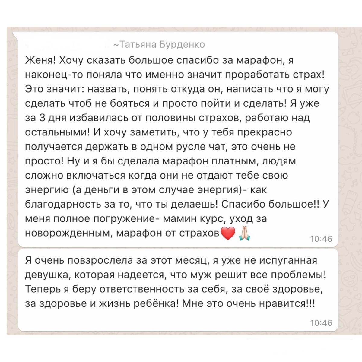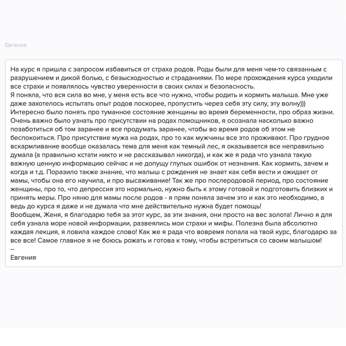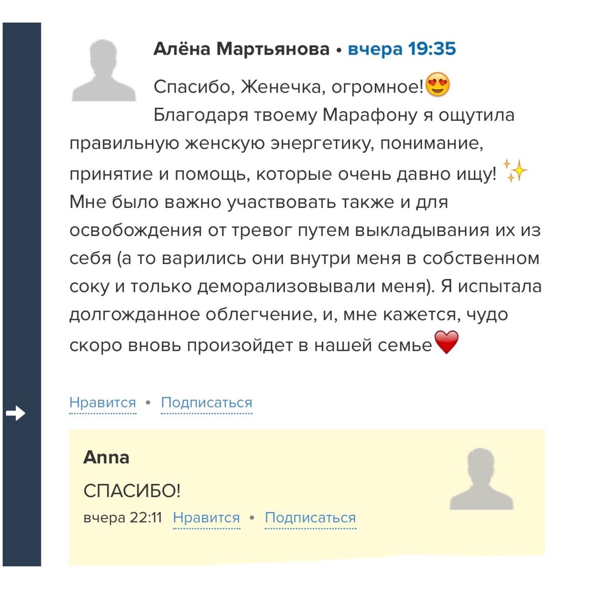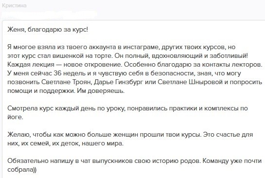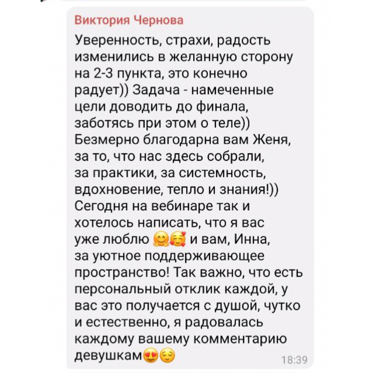 Спасибо Жене и её команде профессионалов. Девушки, обязательно посетите курс. Я потеряла всего два месяца счастливого и уверенного состояния пока не нашла Женю. А кто-то теряет и все 9.
