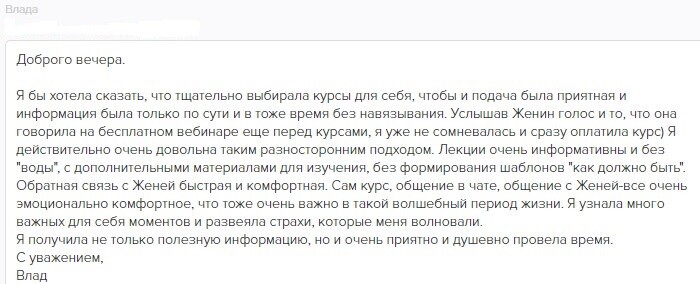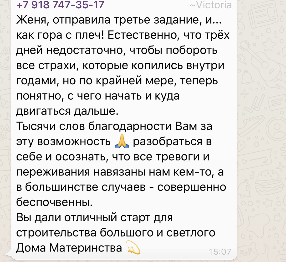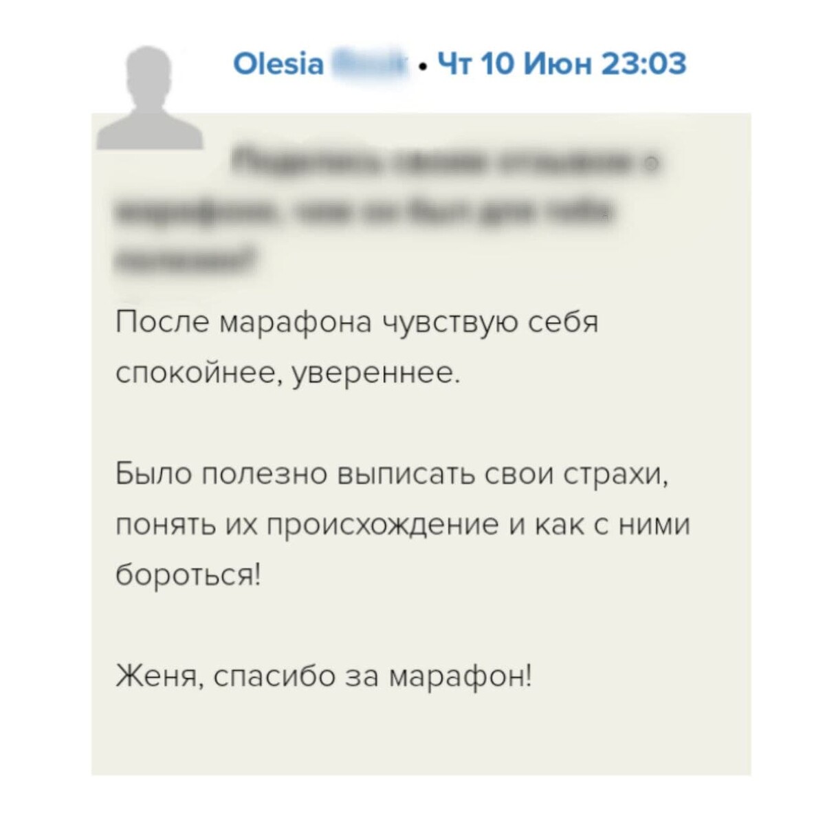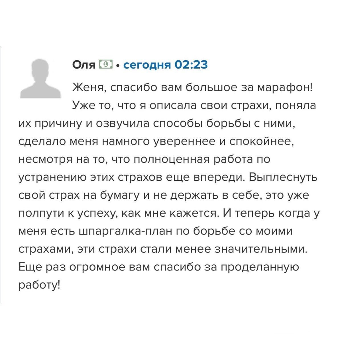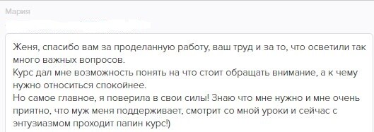 Спасибо Жене и её команде профессионалов. Девушки, обязательно посетите курс. Я потеряла всего два месяца счастливого и уверенного состояния пока не нашла Женю. А кто-то теряет и все 9.