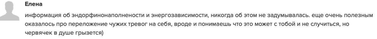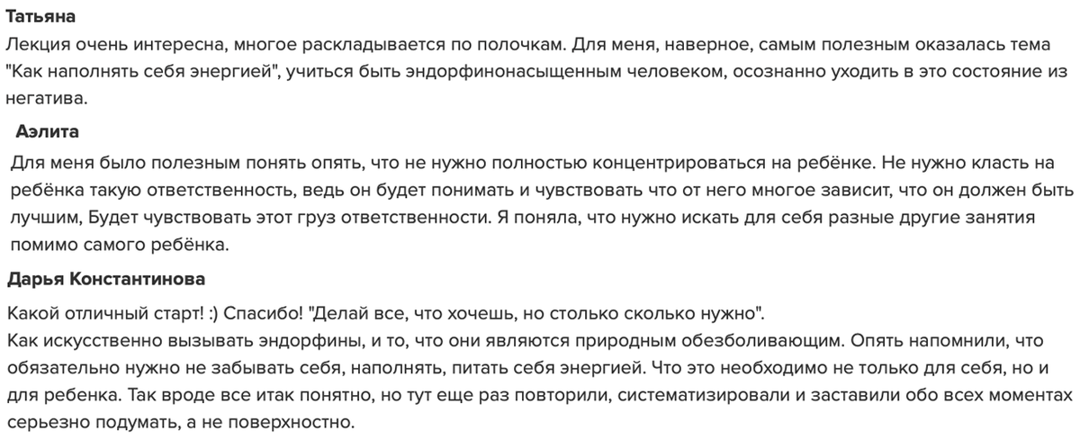 Очень понравилось, что лекции ведут разные специалисты - эксперты своего дела. Отличная идея с заданиями - благодаря им, начинаешь фокусироваться на теме и переслушивать лекции снова и снова, а в итоге понимаешь, что важно не то, какой ты дал ответ, а то, насколько правильно ты усваиваешь информацию и удерживаешь позитивный настрой.